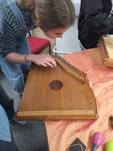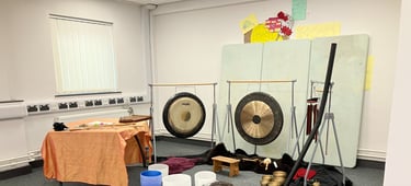 I was lucky enough to experience a sound bath hosted by Mary-Clare O'Connell as part of our CTA cohort...I had never done one before. Some of the instruments and sounds used were so beautiful to hear, and took me to another place....although I did find it difficult to become fully immersed and relaxed. The ones that stood out to me the most and transported me/quietened my mind/relaxed me were identified afterwards when we got to explore the instruments. These were: a long wooden tube with beans (?) inside that replicated the sound of rain and water, like the ocean, the gongs, the singing bowls. The loud, encompassing nature of some of these bowls were extremely powerful and helped me go elsewhere. To explore the range of instruments that have the power to create such transformative, peaceful (and not so), loud and roaring sounds encapsulated a child-like awe, wander and play. It makes for my love of sound and radio enhanced, as it was almost like foley work, replicating places, animals, feelings with different objects...it was only when I opened my eyes and the sound journey finished that the mystery uncovered itself and these objects were identified and linked to the sound heard. I asked Mary-Clare O'Connell what the rain instrument was made from and she wrote: "Lots and lots of long thin nails in a spiral and filled with buck wheat husks which are much softer and more rain like sounding than rice or lentils." This is fascinating, and I must try and make a homemade one/explore this with sound and nature perhaps in a workshop with Friends of Ponty!