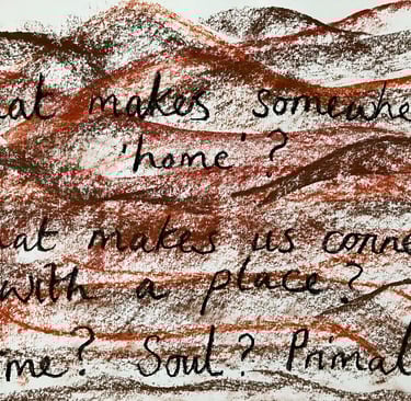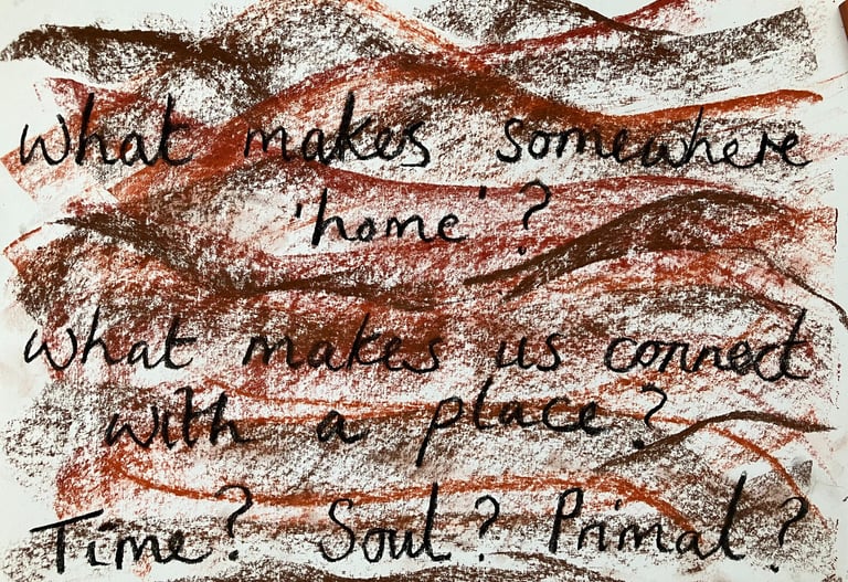 We spoke ceramics and clay and how it is a very accessible medium, as there is no preconceived idea about who should be doing it...feeling your way around, touching and manipulating working directly with the hands, much like gardening. We spoke about looking at exploring clay gathered from the earth around Ponty/wild clay...to literally and metaphorically play and feel the land around us... which brought on to the discussion of home, belonging, Hiraeth...I spoke about worries being from London...Ros reassured me that she too was from London but has been in Ponty 20 years and it very much feels like home...interesting for my explorations...in addition, she spoke about a man from Manchester in the group who lives in Ponty but whose heart very much still stays in Manchester...this provoked questions: 'what makes somewhere home?'/'what makes us connect with a place?'/'Is it time, where we feel our soul, is it primal?'. Ros spoke about students and displacement. She also reminded me the importance of talking to a Welsh speaking person about 'Hiraeth' as it helps an English person explore the way different people take on a word without understanding where it came from...the language has changed over the years...and interpretations are unique to each person.