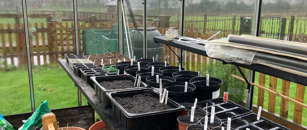 What a lovely time. On a day that one might not otherwise go out (blistering wind and rain and a very strong and full river!), I was so grateful for being outside gardening and chatting. I met three volunteers alongside Ros. I spent the morning sewing seeds with the two men who have been coming for a long time (I won't currently name names as I haven't asked for permission for confidentiality), each week without fail. They had a wonderful relationship;, learning from another and joking. They were so welcoming and taught me so patiently the best way to sew each seed and we planted so many! Sunflowers, radish, spinach, cress, lettuce, beetroot, peas, chilli, tomatoes... in the two hours I learned about the different seed appearances for each vegetable or plant and the right conditions for them. The process naturally became a production line with team work and chatter. I learned that one gentleman had been a gardener and roofer and so knows a bit about construction for a bench (!) and the other gentleman does pub quizzes all over the area and often does them with the group! I LOVE a pub quiz and am very familiar due to my work at a pub and creative project with one in the past, and so he will bring in a quiz for us to do next week. This may be something that could produce a beautiful part of the project perhaps incorporating a creative round or one that explores nature and history. He, too, knows about building and construction as he had already built one for the group previously...they both seem really down for making a bench which is wonderful as Ros mentioned they don't often feel like they want to get involved with the other craft projects, so this feels right up their street! They were so knowledgeable about gardening, animals, nature and the land and held many stories, wit and humour within them...I'd love to get to know them more as I join them in learning about gardening through their kind and welcoming guidance.