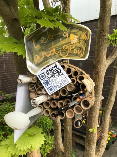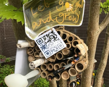 Bamboo outdoor hanging with handmade seed paper, inviting people to write down their worries and thoughts in that moment, and throw/dig into the earth. Eventually these worries we have in the moment, now in the past, will grow into wildflowers, a distant memory, transformed into something beautiful. Inspired by Buddhist philosophy and the conservation of our natural world. Exhibited as part of 'Articulture/Garden Party' amongst Creative and Therapeutic Artists in Treforest.