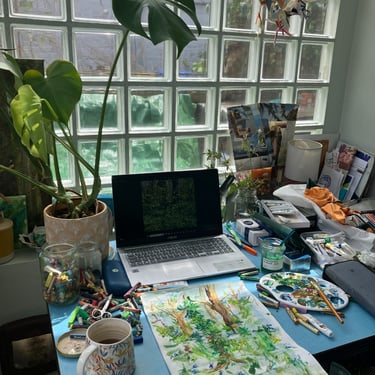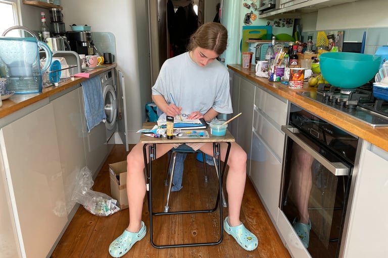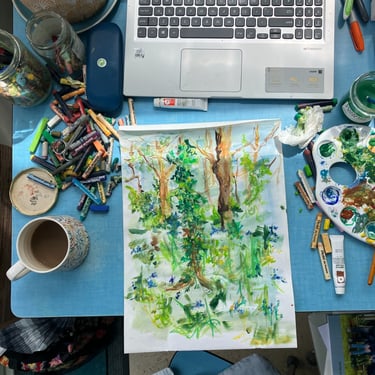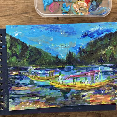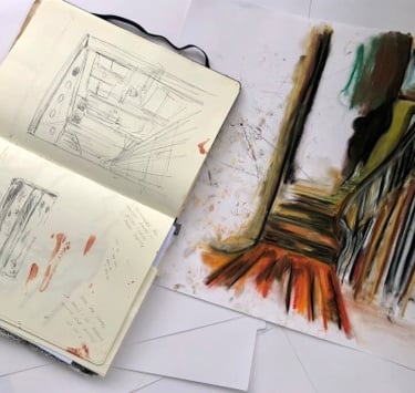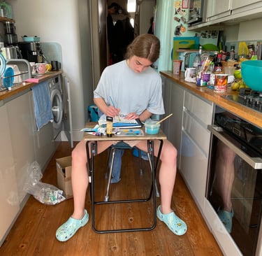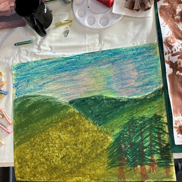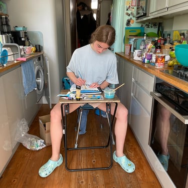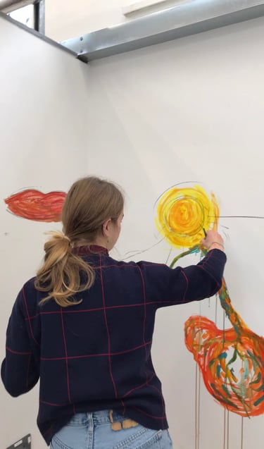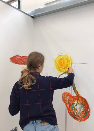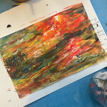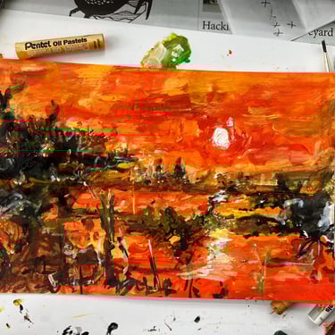 When I paint, it feels very intuitive. I get lost in the world of colour. The hues I see in the landscapes, still life or faces pull me into the paint. I gravitate towards oranges, reds, yellows, blues and greens. I see these colours in everything! When I paint, I paint quickly and do so in a somatic way, with bold brush strokes that layer on the paint to add texture and movement. It's almost subconscious.