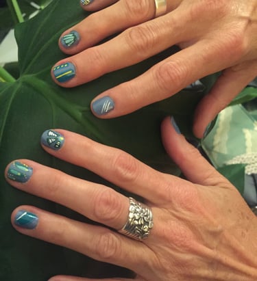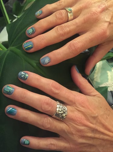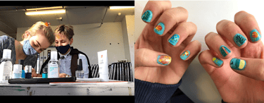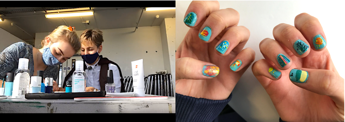Building on both these explorations, I later did my own 'durational performance', setting up a creative nail salon and doing nail art with my Kingston foundation cohort. For those comfortable to join, I painted their chosen designs, holding their hands, talking throughout, recording each sitting. This live art piece aimed to encourage the human touch, creative interaction and natural conversation that came about as a result of this experience, that we had been missing for so long.