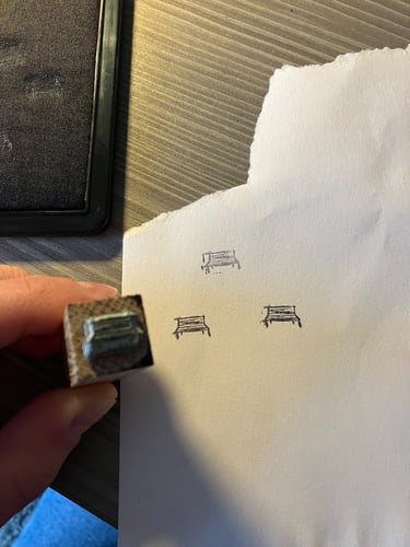 Very excited by this cute bench stamp, seeing my design made into a miniscule stamp is so lovely! I have been stamping away...
