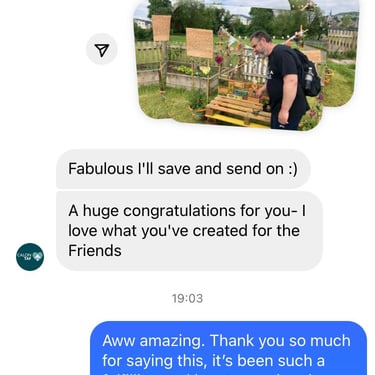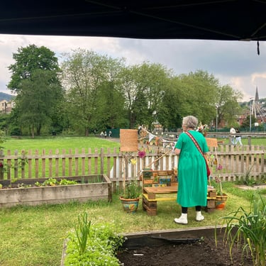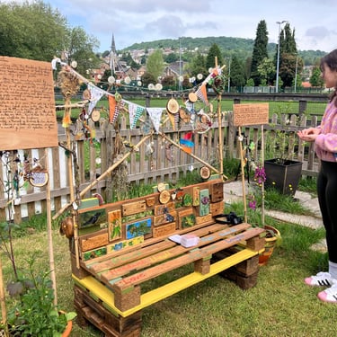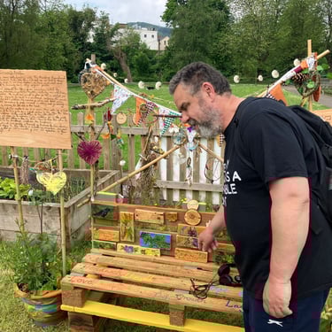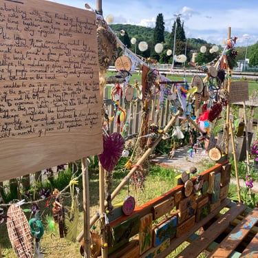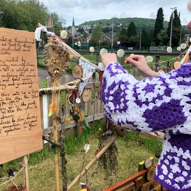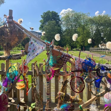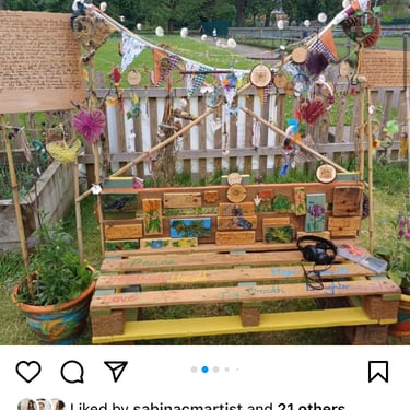 For my final degree project, I have been collaborating with The Friends of Ynysangharad War Memorial Park, who have embraced me as part of their gardening group. In our time together, we have constructed and designed a community bench, using upcycled palettes. The bench represents the legacy of our connection, marked by kindness, teamwork, imagination, laughter, creativity, resourcefulness, and nature. The bench has found a place for all, a catalyst for creativity. Alongside the bench is a soundscape combining the sounds of Pontypridd, wildlife, the melodies of spring, and local voices, with the conversations of people immersed in making and gardening. Listen by scanning the QR code on the bench. For those who are unable to see it in person, there will be a live stream at the time of the sun’s highest position in the sky, the ‘Solar Noon,’ between 13.09 p.m. and 14.09 p.m. on May 17th–19th. This will allow you to experience a film, situating you in the park as if you were sitting on this very bench. There is also the option to listen to the soundscape alongside the livestream. So, why not give yourself a moment of kindness to slow down and engage in deep listening or a time of connection designed to provide you with a moment of peace and reflection in your day?