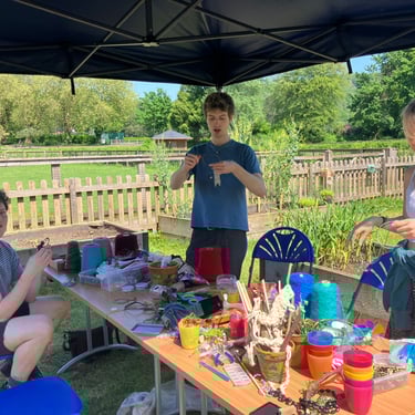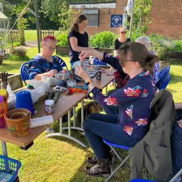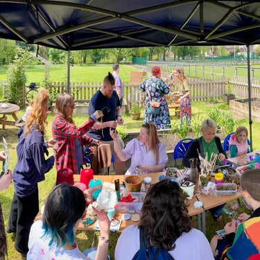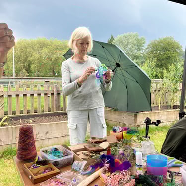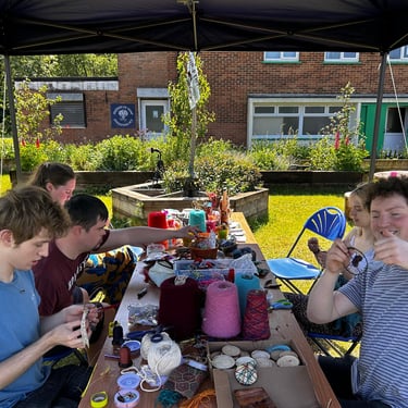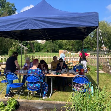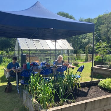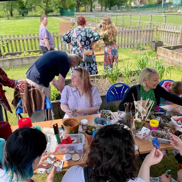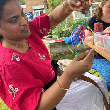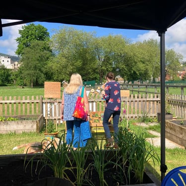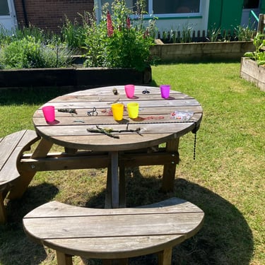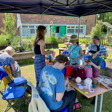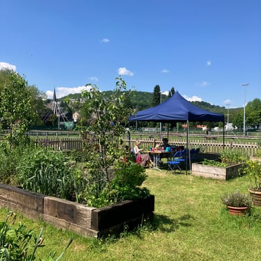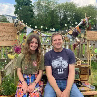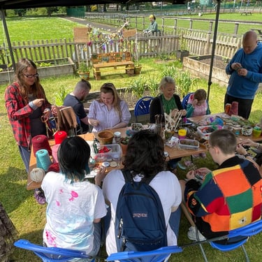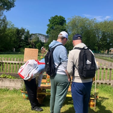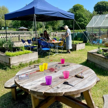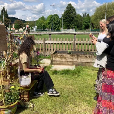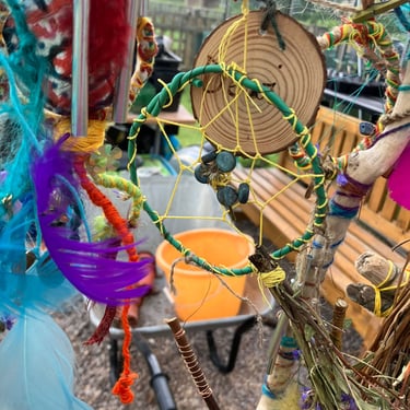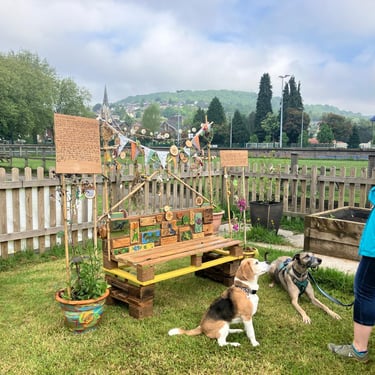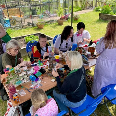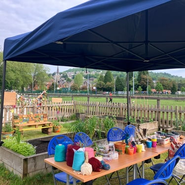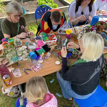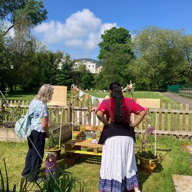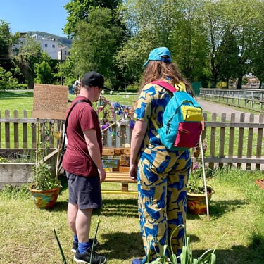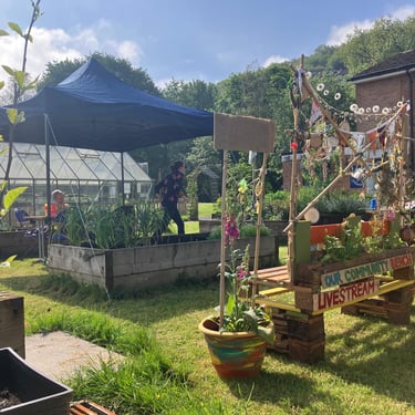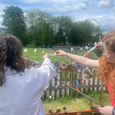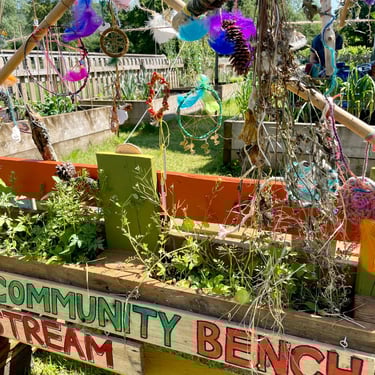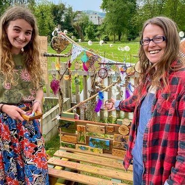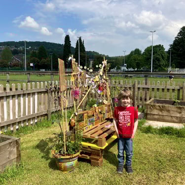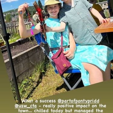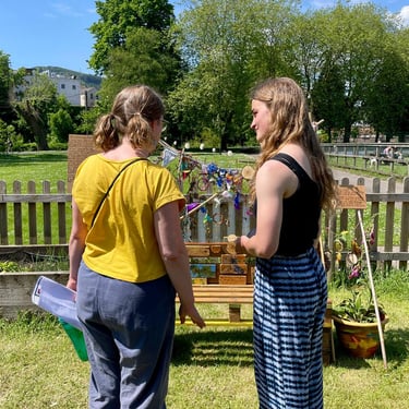 Working alongside the wonderful gardening group The Friends of Ynysangharad War Memorial Park, gardening, constructing and designing a community bench, soundscape and making sun-catchers