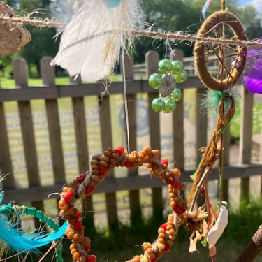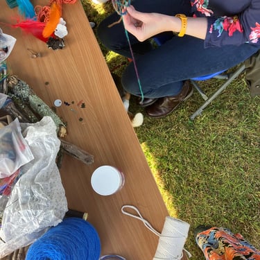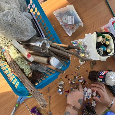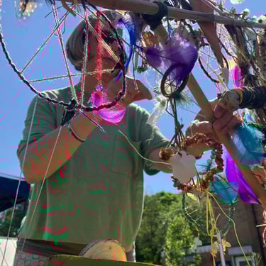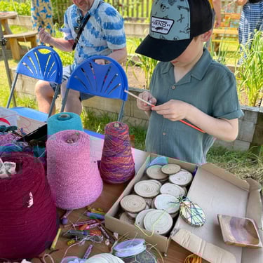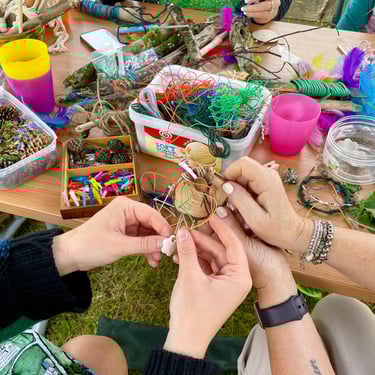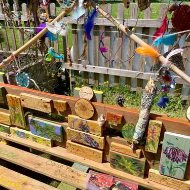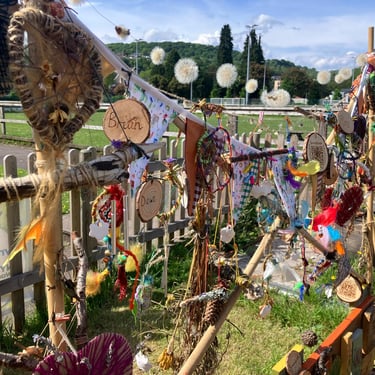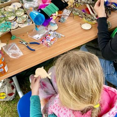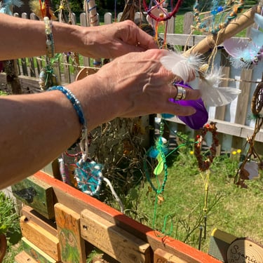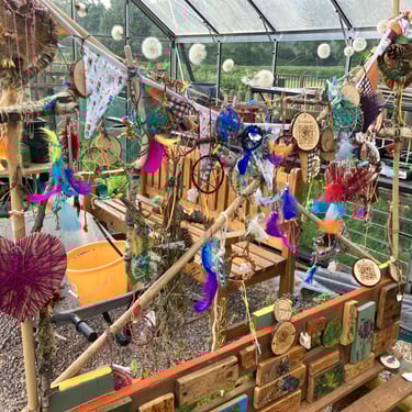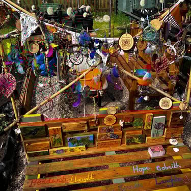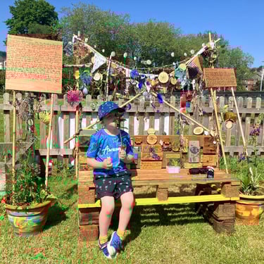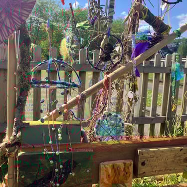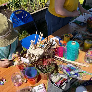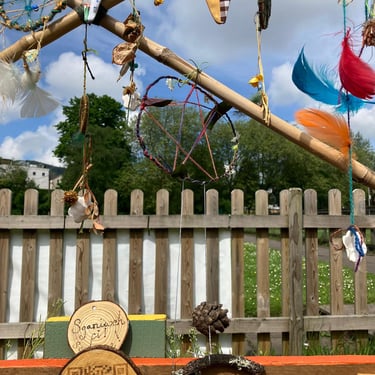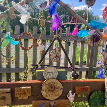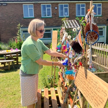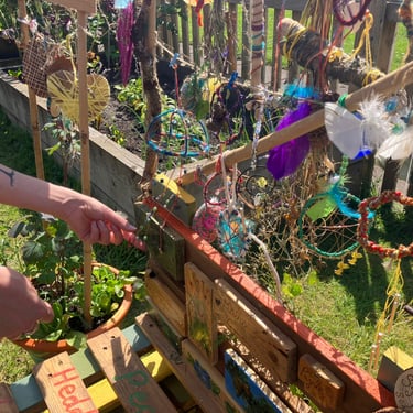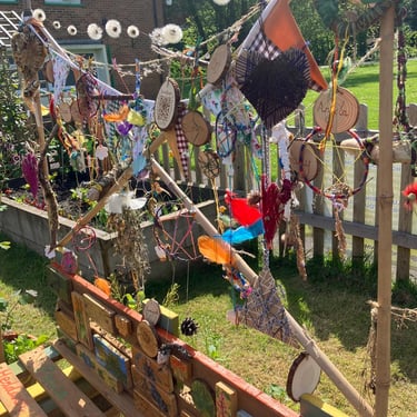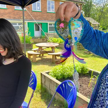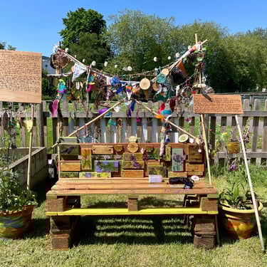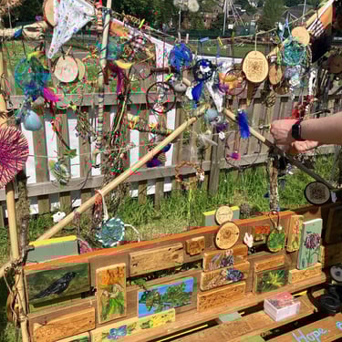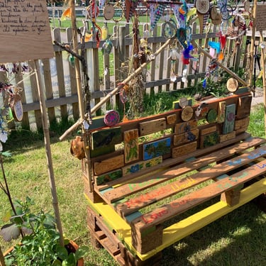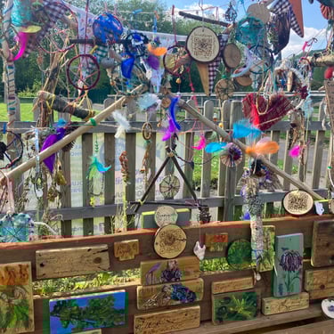 Over the course of the art trail, I facilitated sun-catcher making workshops within the gardens for the community to join in and add to our bench. It was such a huge success! So many members of the local community came and connected and created, spending hours of peace and chatter in the serene gardens. The bench evolved and grew and, by the end of the weekend, it held each and every unique representation of those who came in the form of a beautifully crafted sun-catcher.