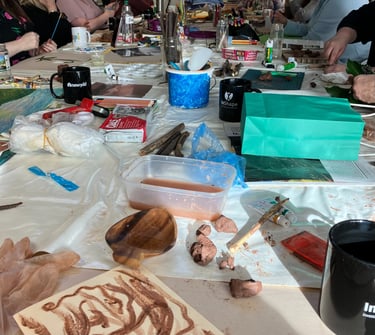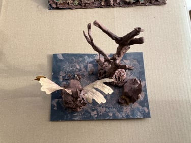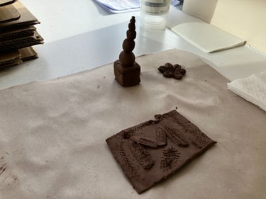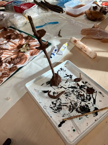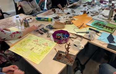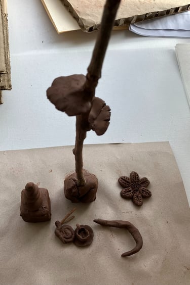 What struck me the most was the beautiful, intuitive and diverse creations each person made, all unique. Each creation made speaks to the person's authenticity. Everyone used the clay in a different way whether that be rolling; building a picture; making a sculpture; telling a story; making a gift; using as a tool etc....it felt very much like everyone around the table was connected to their playful side and in tune with the natural world, and that shows just how much of an impact being surrounded by and living around nature can have on us. I'd love to explore this more, it has further inspired the art trail ideas, so watch this space!