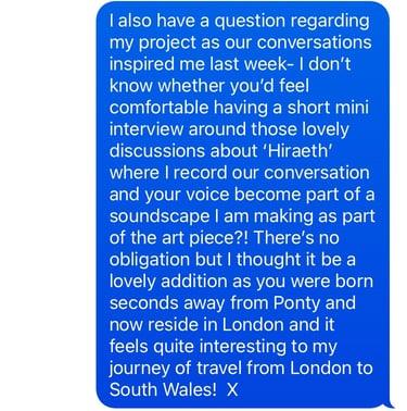 Discovered you can only live stream if you have 50 subscribers, so have asked around for subscribers, haha! If worse comes to worse, I have found a bypass of this, too. Having had such a wonderful chat with Sue, born in South Wales but living in London and Ros, born in London but now living in South Wales....I wondered if I could interview them about home/moving etc, as with both our conversations 'belonging' has come up....may be lovely for the soundscape!